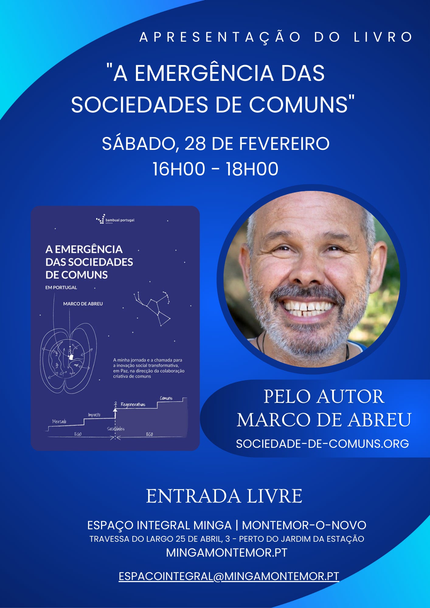 No próximo dia 28 de fevereiro, no ESPAÇO INTEGRAL da Cooperativa Integral Minga, em Montemor-o-Novo, acolhe a apresentação do livro A Emergência das Sociedades de Comuns, numa sessão conduzida pelo seu autor, Marco de Abreu.